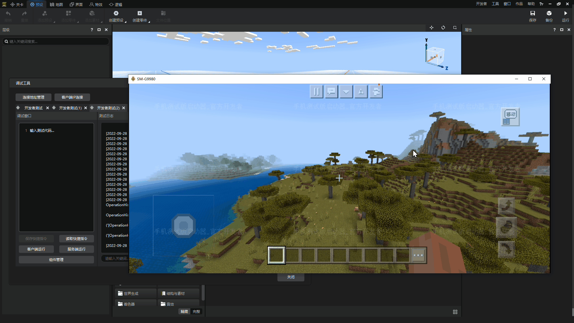 - 日志窗口:查看PC开发包、手机测试服的进程日志,支持搜索、筛选等;